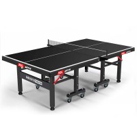 室内折叠带轮乒乓球台的标准尺寸通常是9英尺长、5英尺宽、2.5英尺高。在折叠时,乒乓球球桌的高度通常为6英寸,这使得球桌便于收纳和存储。